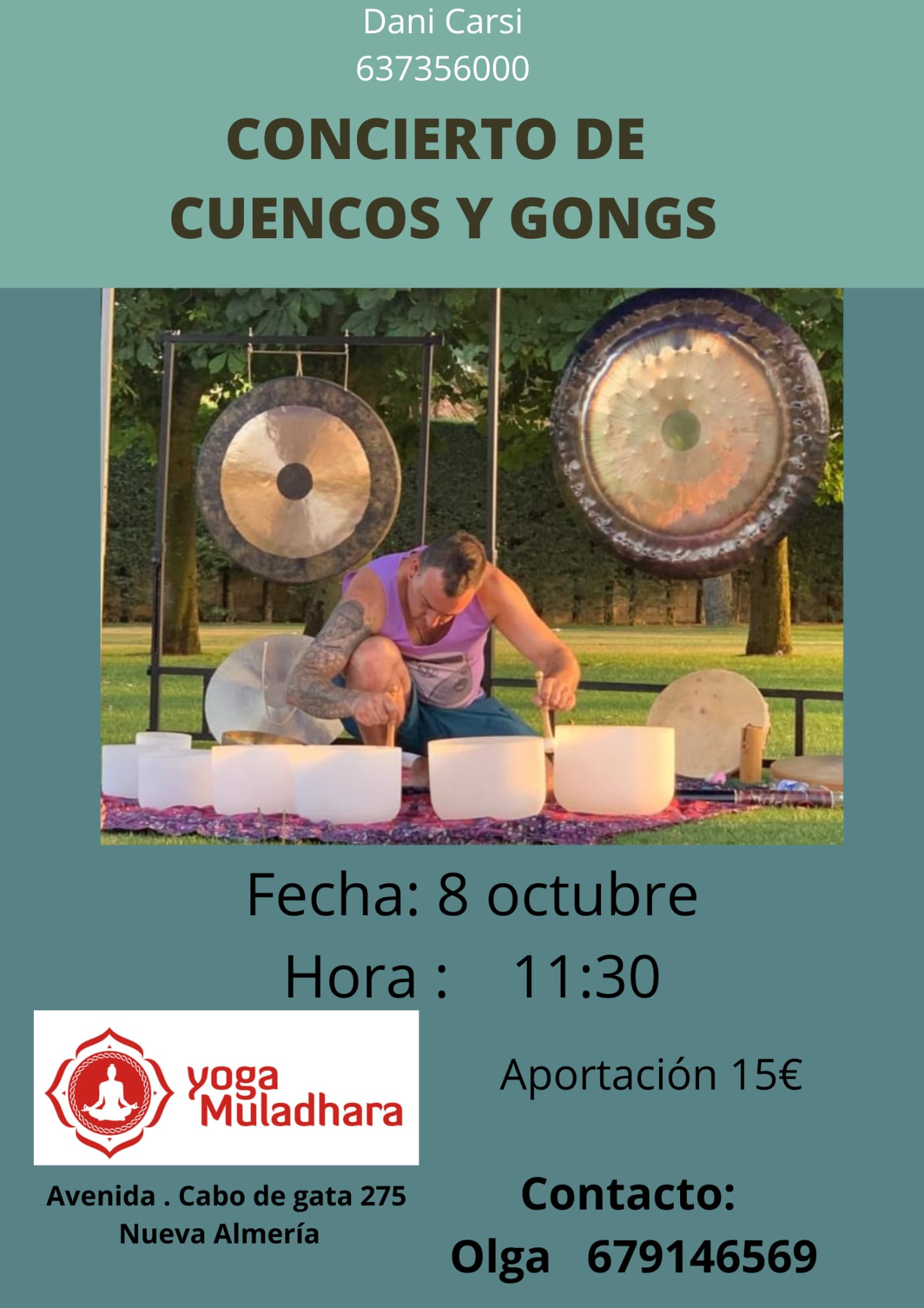Atrévete a vibrar en este concierto de Gongs y Cuencos que nos ofrece Dani Carsi en Yoga Muladhara. Una experiencia única para conectar con tu energía interior y vivenciar el poder de la vibración.