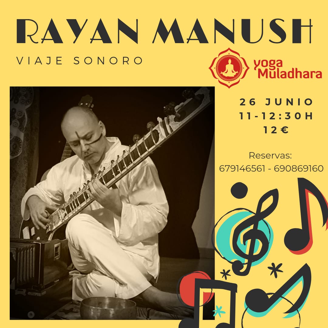 Rayan Manush nos ofrece un maravilloso Viaje Sonoro hacia nuestro interior. Disfruta de una hora de sonidos en directo, sin amplificar, con instrumentos ancestrales y contemporáneos. Siente la vibración de las cuerdas de una guitarra y de las cuerdas vocales de la voz humana. Déjate penetrar por las ondas sonoras de los cuencos tibetanos y de cuarzo, del shruti box, del sitar…